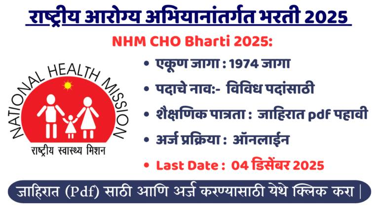 NHM CHO Bharti 2025: राष्ट्रीय आरोग्य अभियानांतर्गत महाराष्ट्र राज्यात 1974 जागांसाठी भरती सुरु NHM CHO Bharti 2025: राष्ट्रीय आरोग्य अभियानांतर्गत …