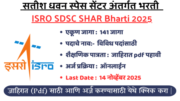 ISRO SDSC SHAR Bharti 2025: सतीश धवन स्पेस सेंटर अंतर्गत तब्बल 141 जागांसाठी भरती सुरु, जाणून घ्या सर्व तपशील ISRO …