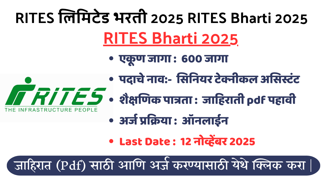 RITES Bharti 2025: RITES लिमिटेड मध्ये मोठी भरती सुरु, तब्बल 600 जागांसाठी पदभरनी